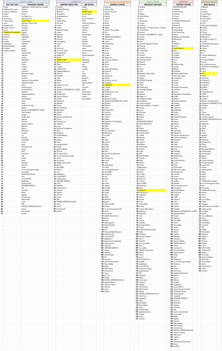 et je suis heureuse de vous annoncer le nom des 8 chanceuses :
